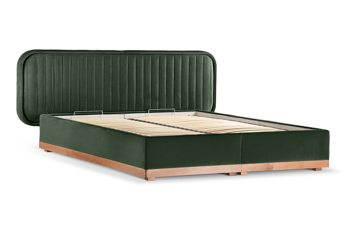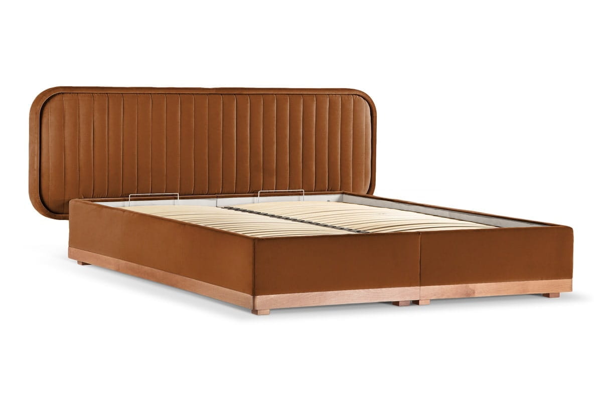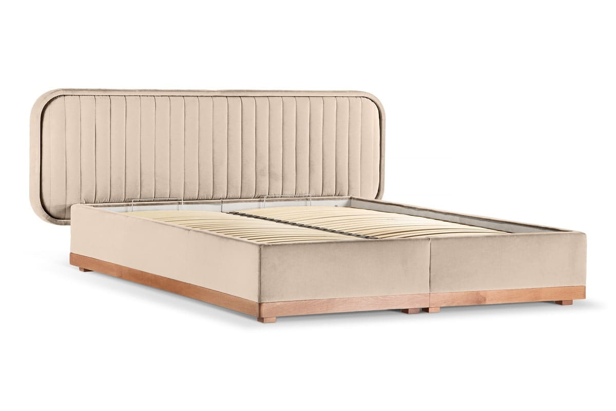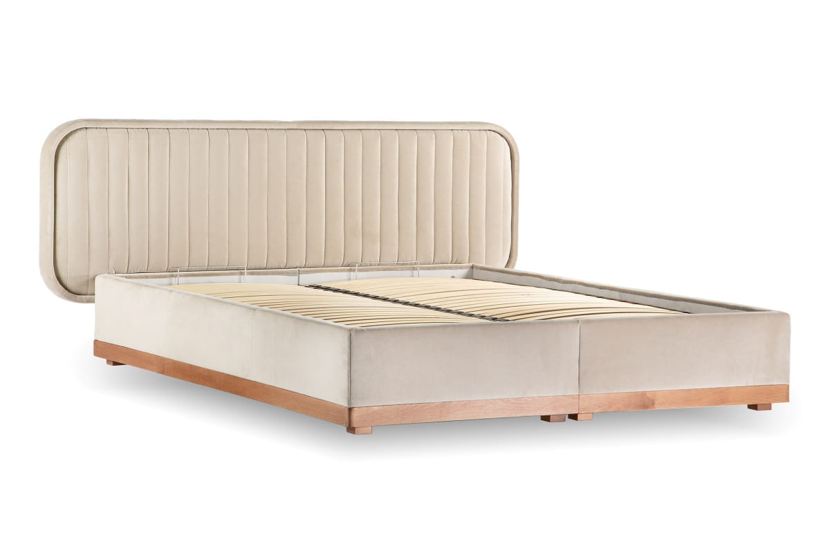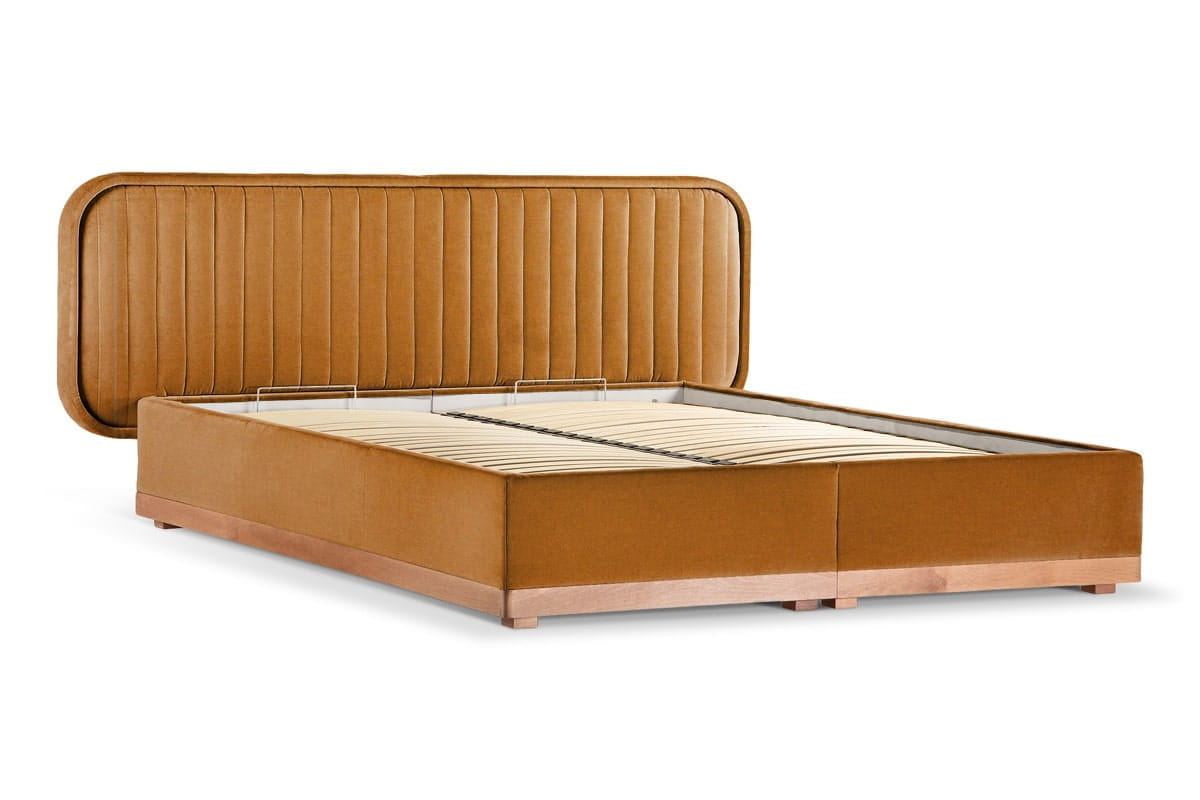 Delikate double bed with storage (180x200) in Capri 05, oak legs.