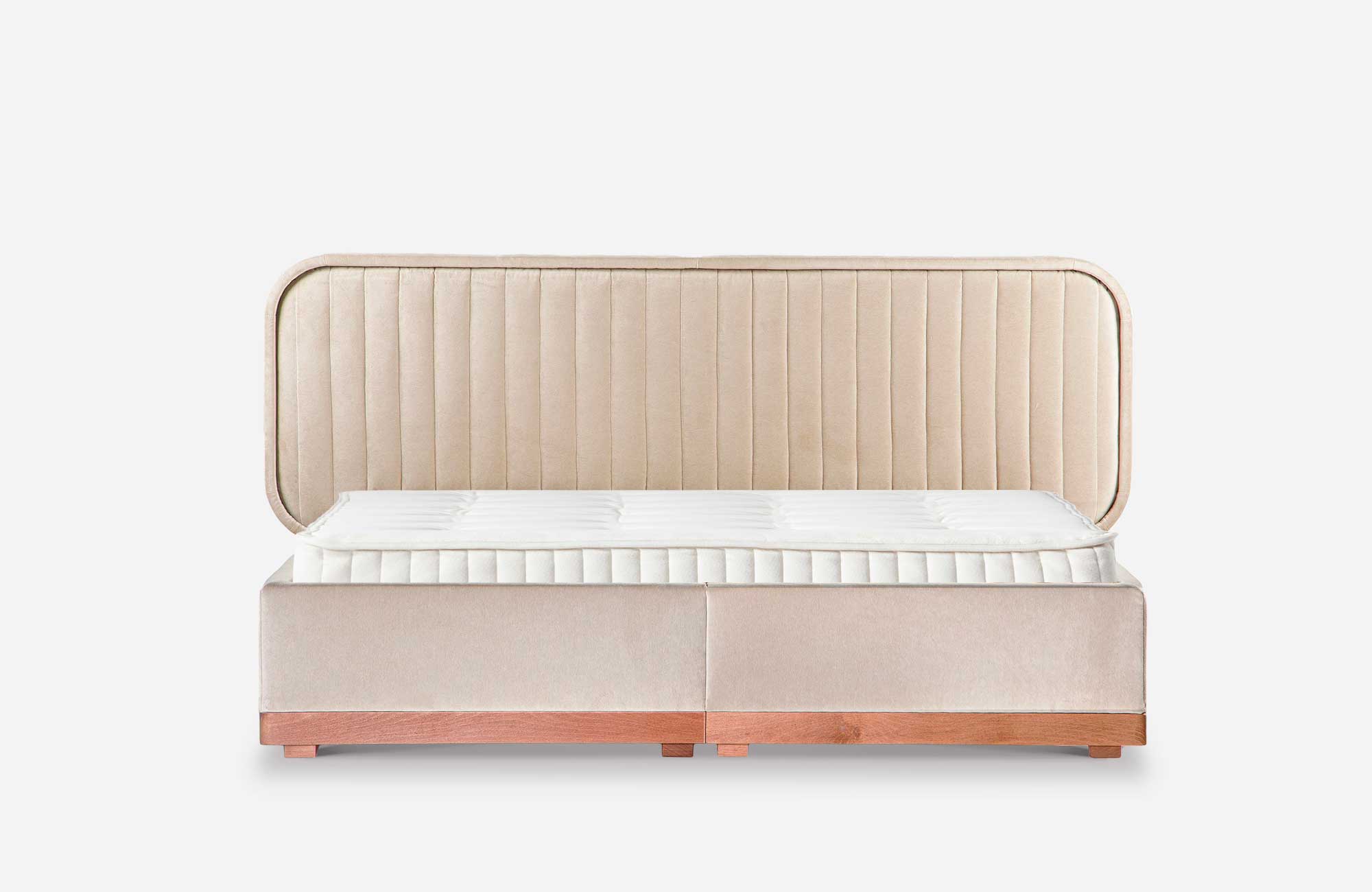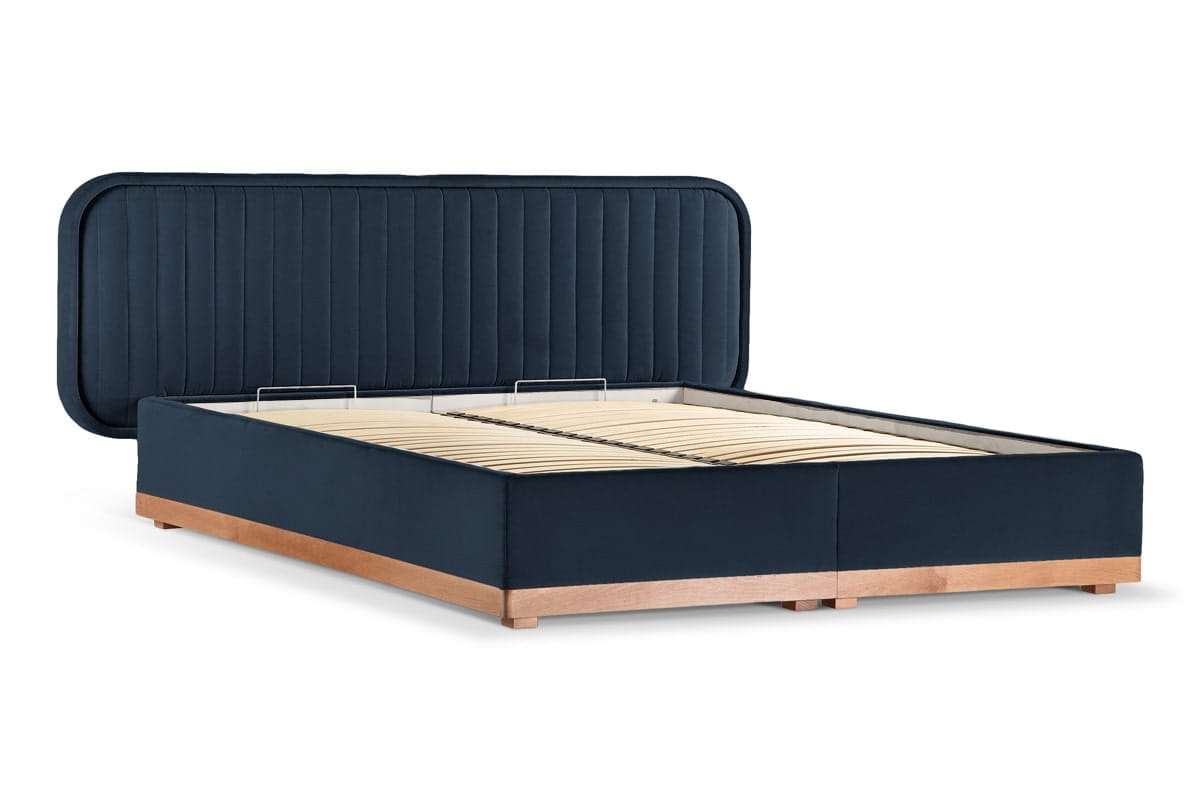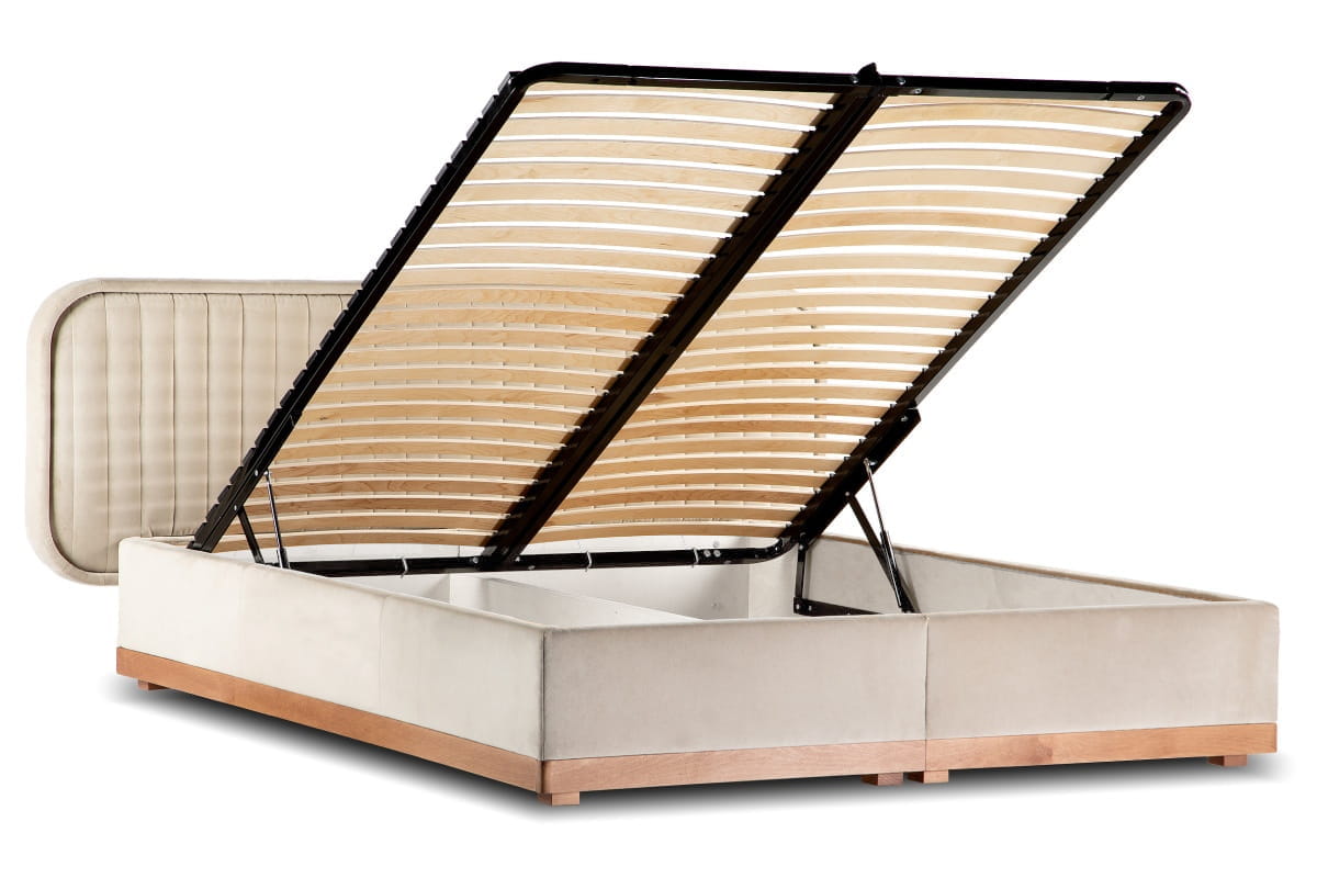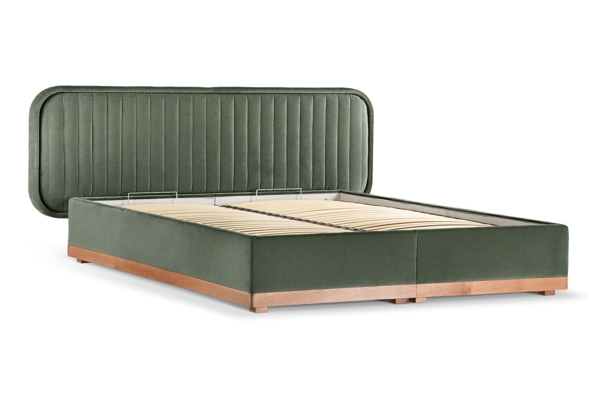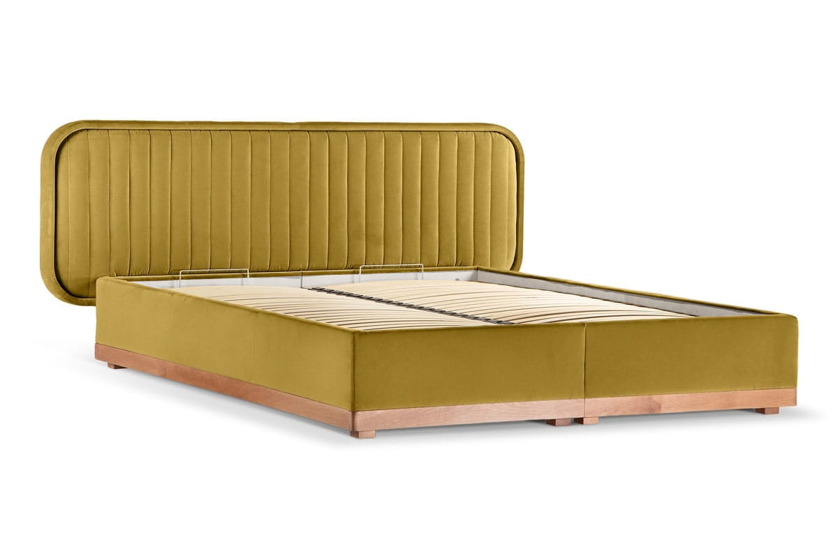 Delikate double bed with storage (180x200) in Capri 05, oak legs.