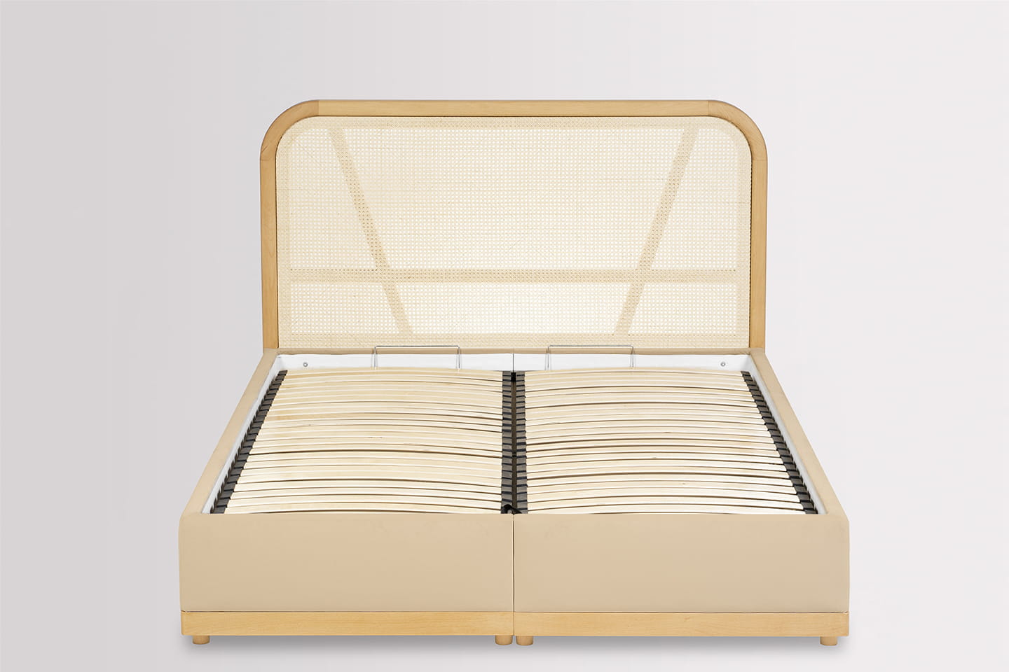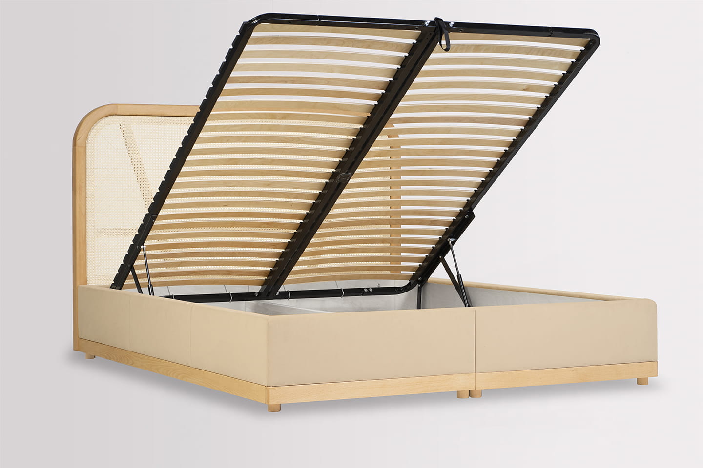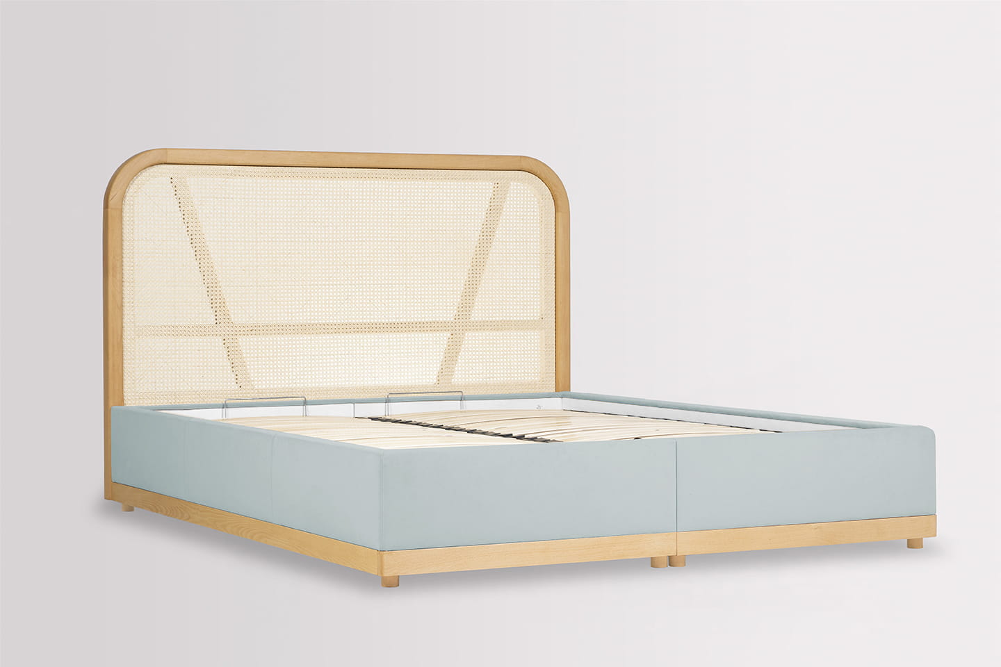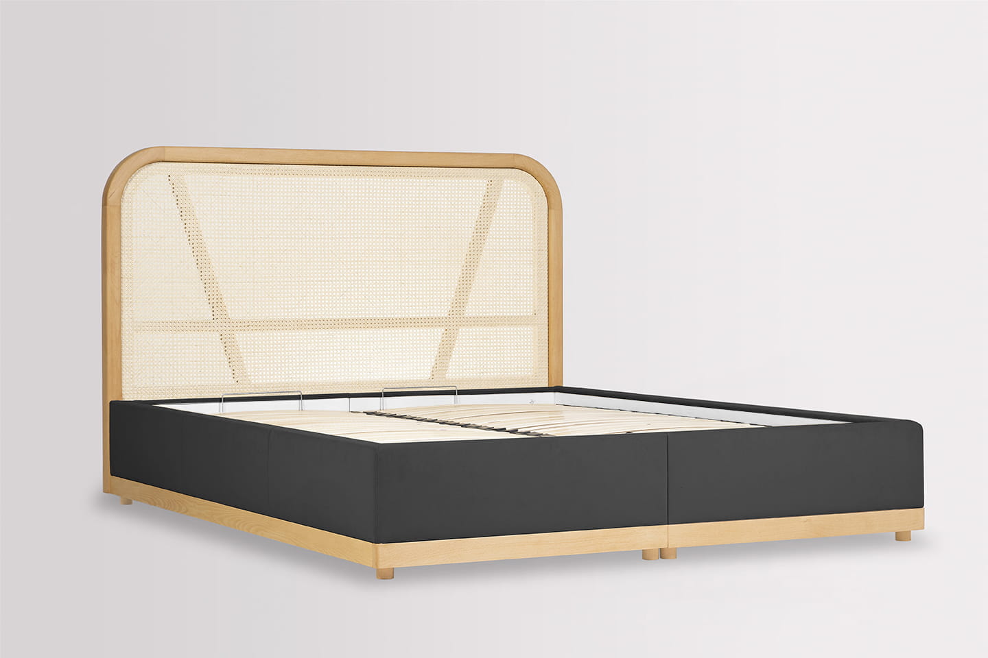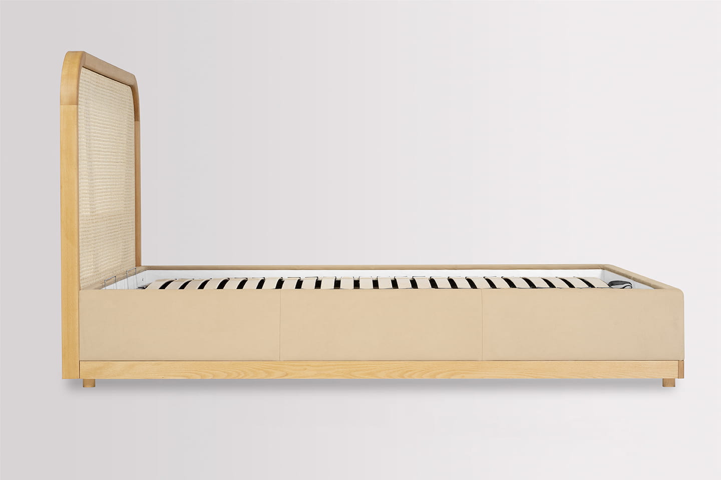 JAPANDI BED 180X200 WITH STORAGE + 2x BED SIDE CABINET KLEMATISAR ANG COLOURWASH 15 SWAN